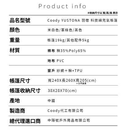 Coody YUSTONA羽宿 棉布充氣帳篷