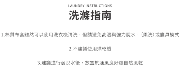 .可機洗好保養:建議使用洗衣袋、柔洗/棉被行程