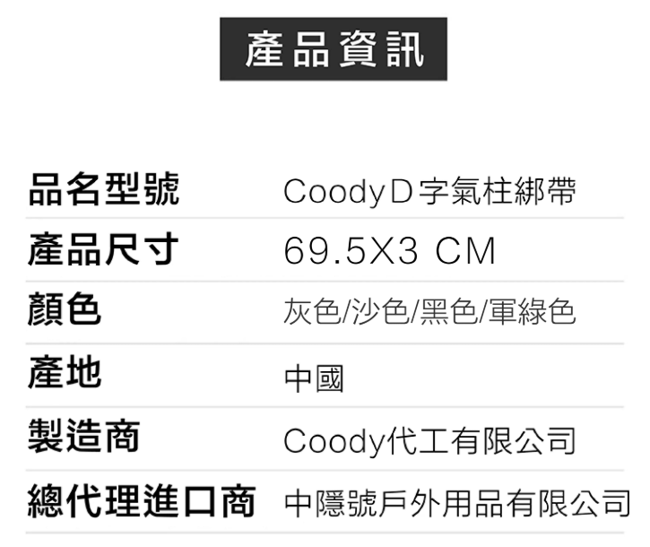 Coody 氣柱D環扣綁帶(1條)掛衣掛燈